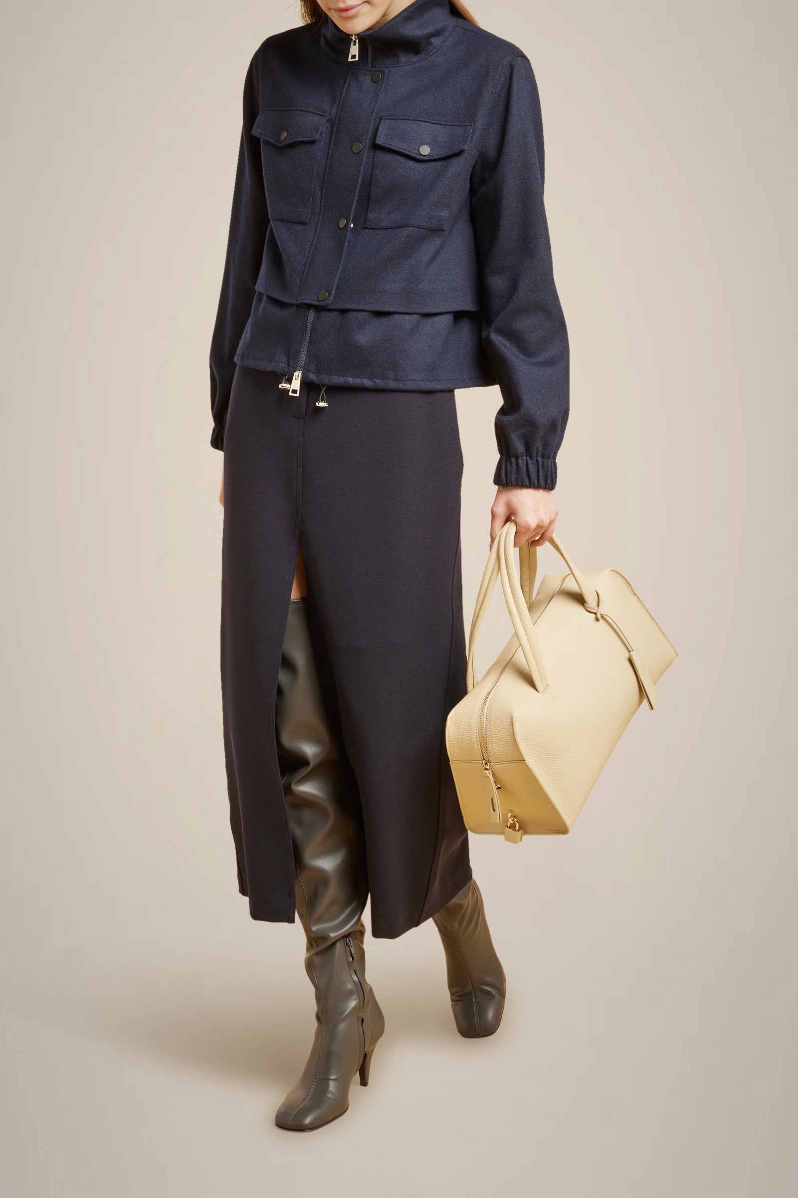 Extrafine merino wool skirt, straight design, side slit at the bottom.