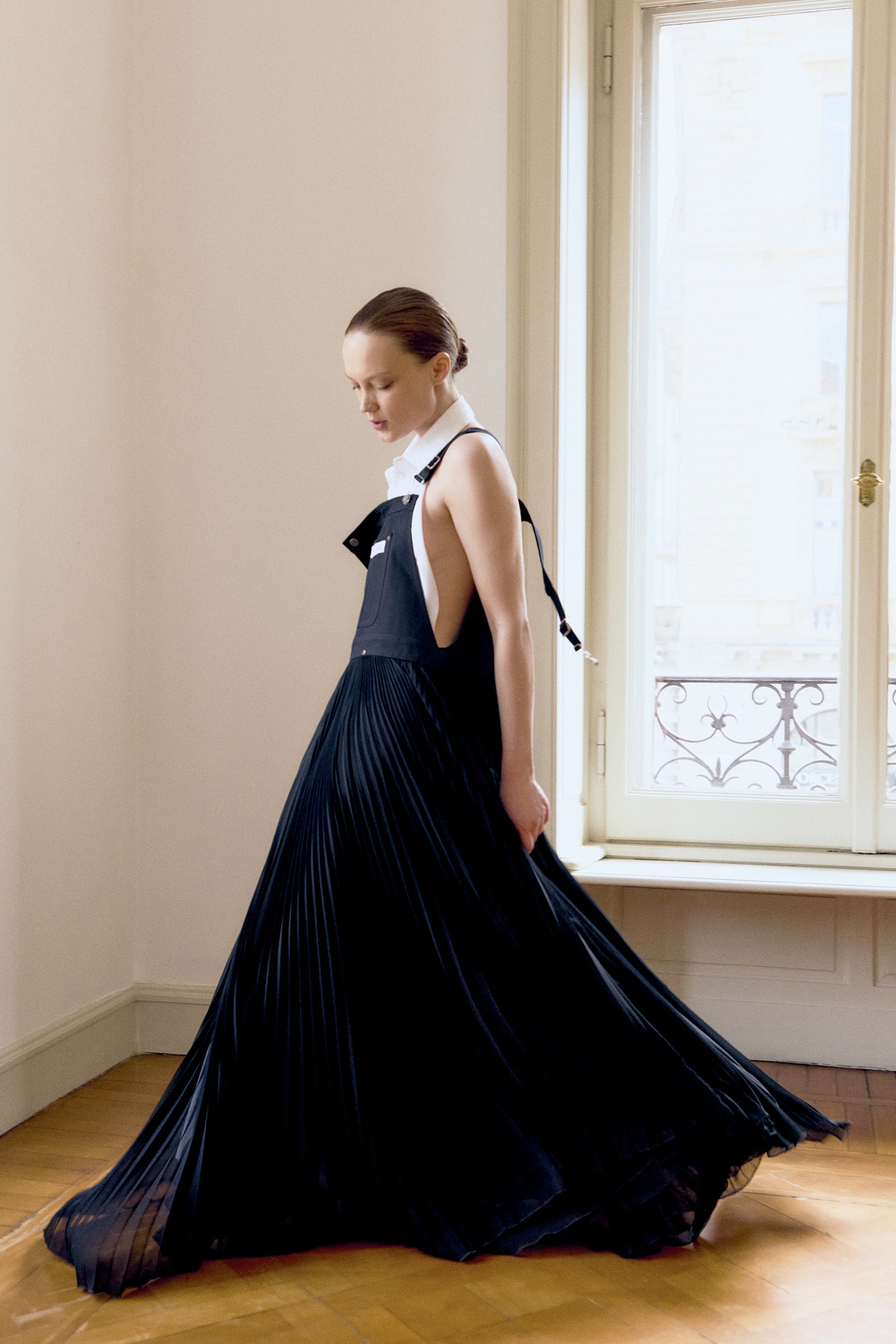 GIACCA IN PANAMA DI COTONE IN ABBINAMENTO AL PLISSE' STACCABILE, ALLACCIATURA A MONOPETTO, COLLO CLASSICO CON REVER, TASCHINE A TOPPA CON RIVETTI, MANICHE LUNGHE.